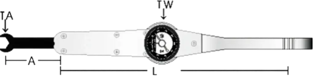 - For dial-momentnøkler: Avstanden fra sentrum av firkanten til midten av håndtakets markering.