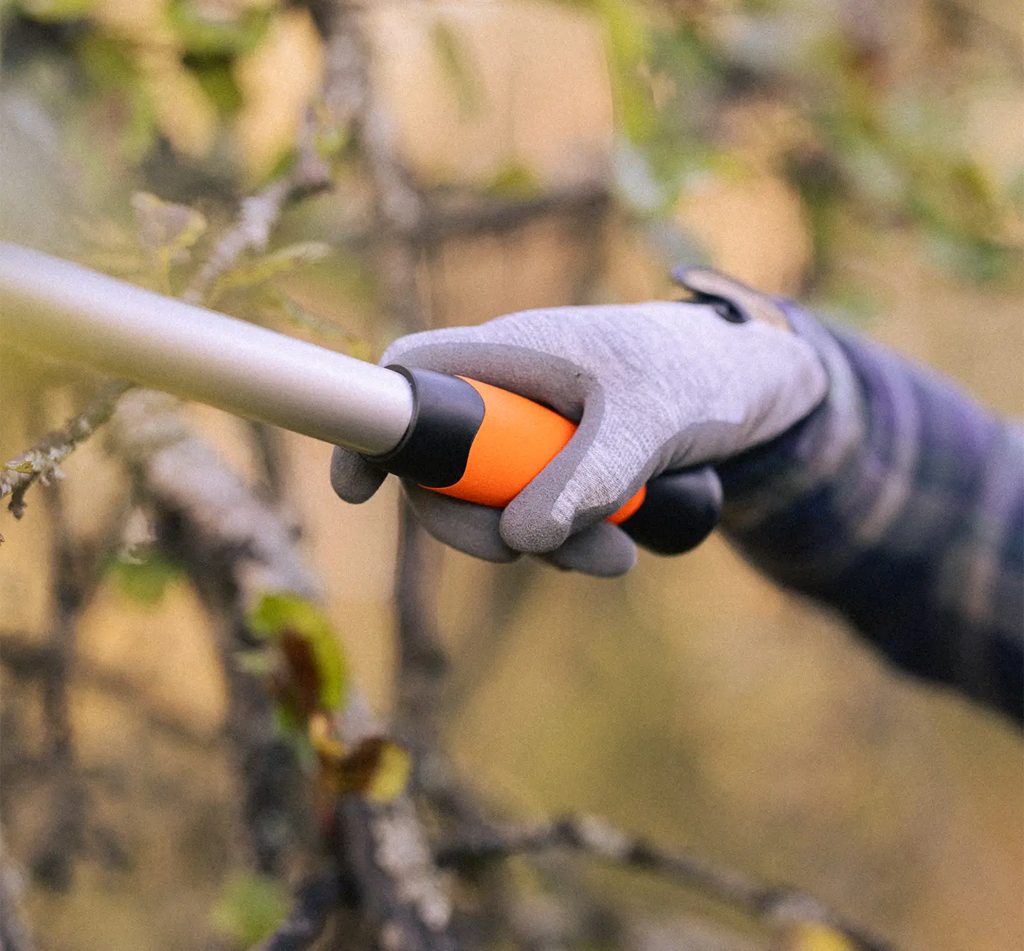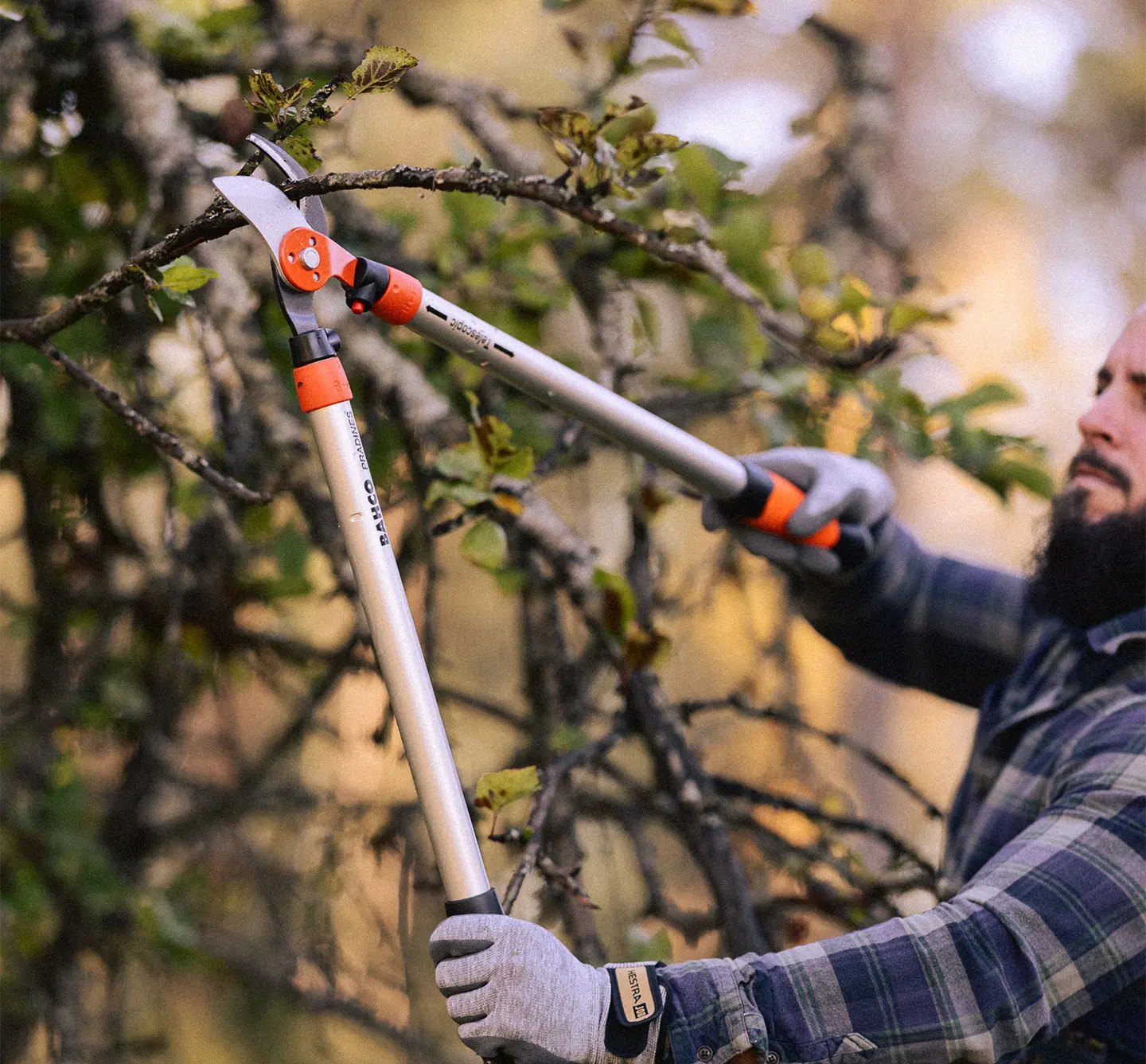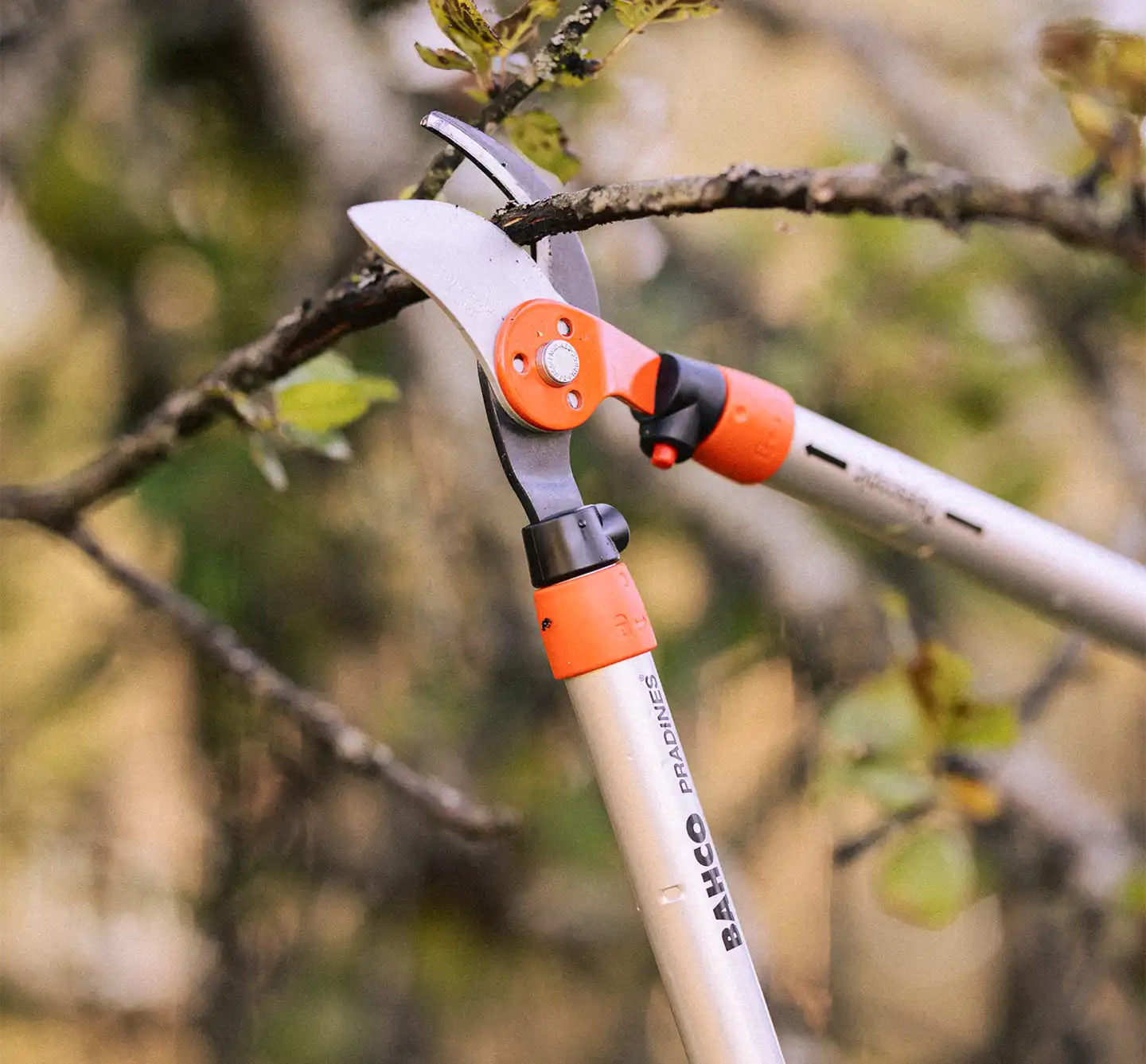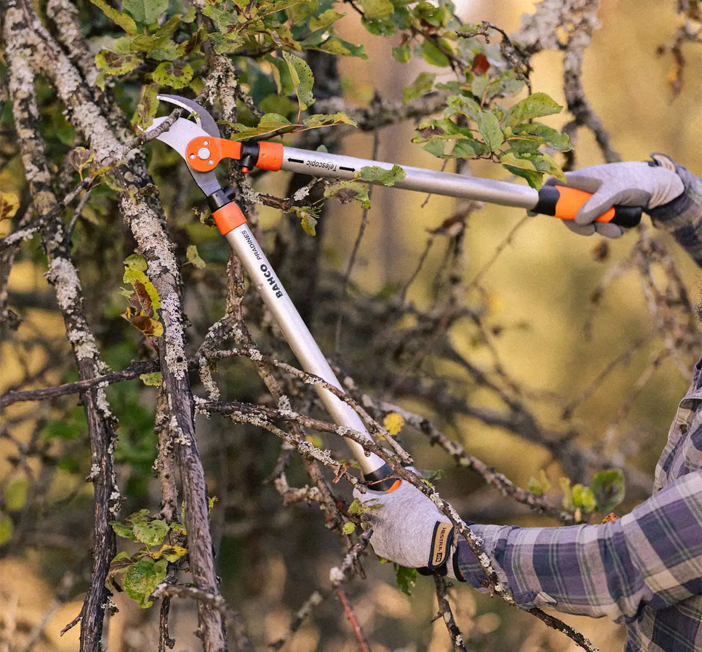Kraftig grensaks med 40 mm skjærelengde og teleskophåndtak, ideell for tykke greiner og vanskelig tilgjengelige områder.