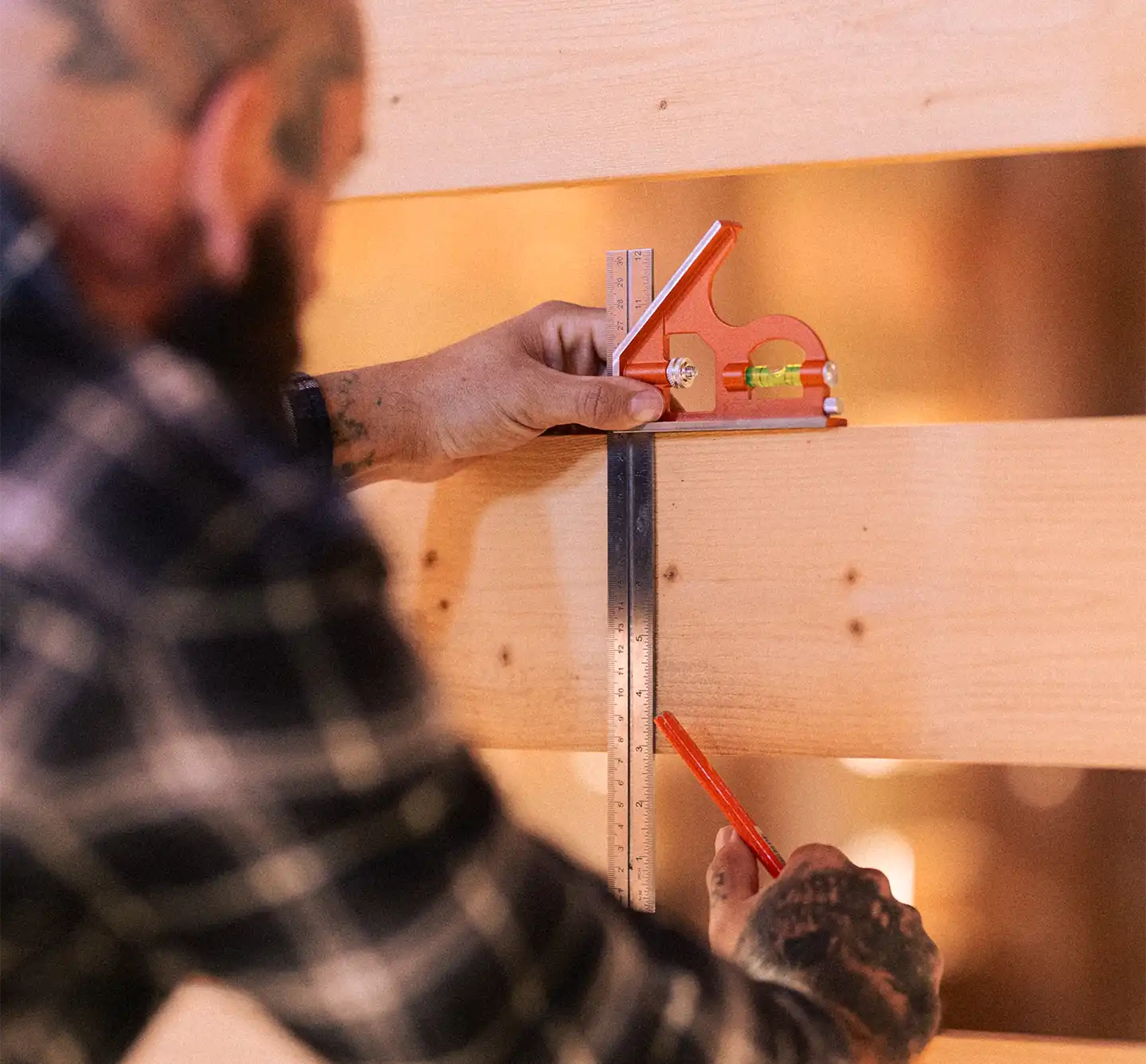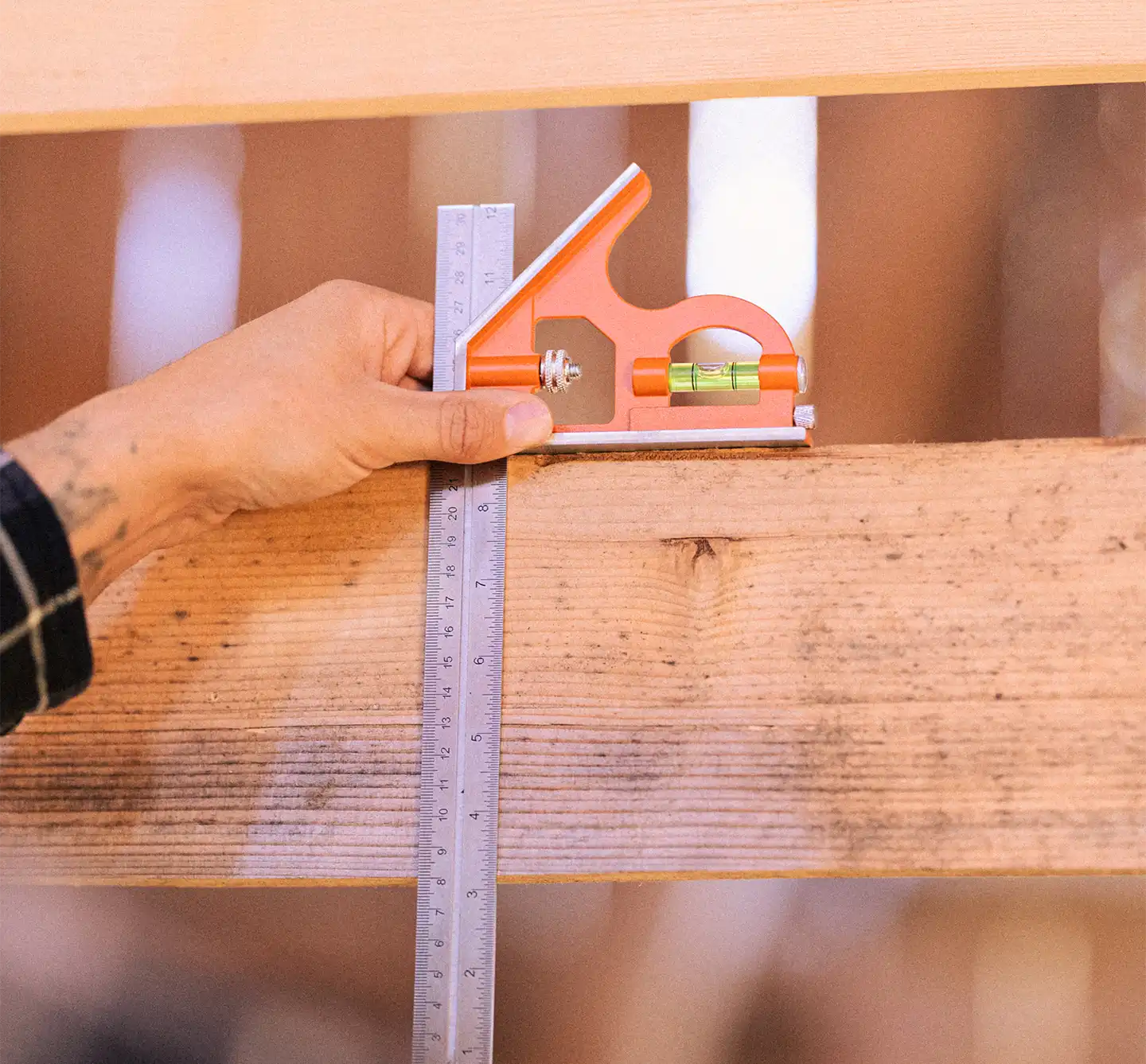 Kombinasjonsvinkelen har en målelengde på 300 mm, med en tydelig graveringsskala i både millimeter og tommer. Dette gjør det enkelt å ta nøyaktige målinger uavhengig av enhet, noe som gir deg fleksibilitet i ulike typer arbeidsoppgaver. Målelengden er laget for å tåle slitasje, slik at skalaen forblir lett lesbar over tid.