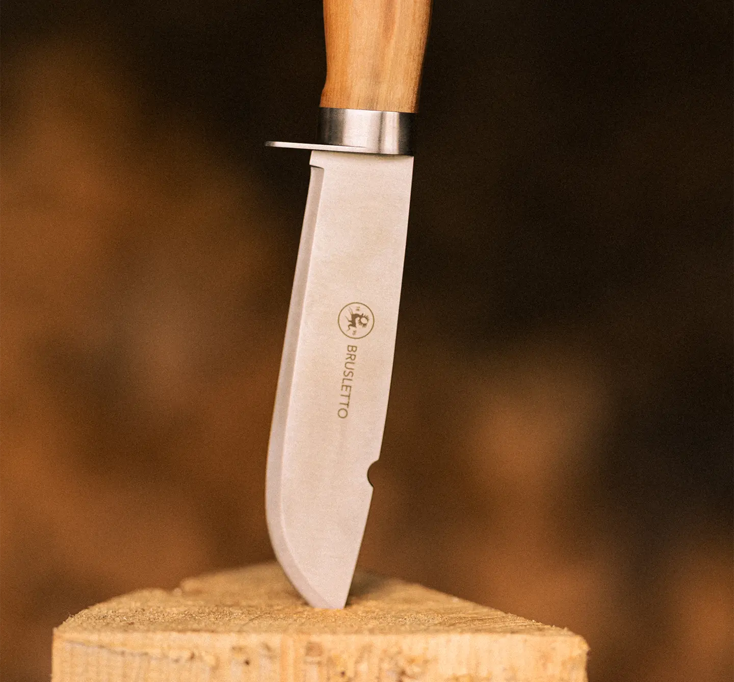 Slitesterk allroundkniv med blad i rustfritt stål og skaft i oliventre.