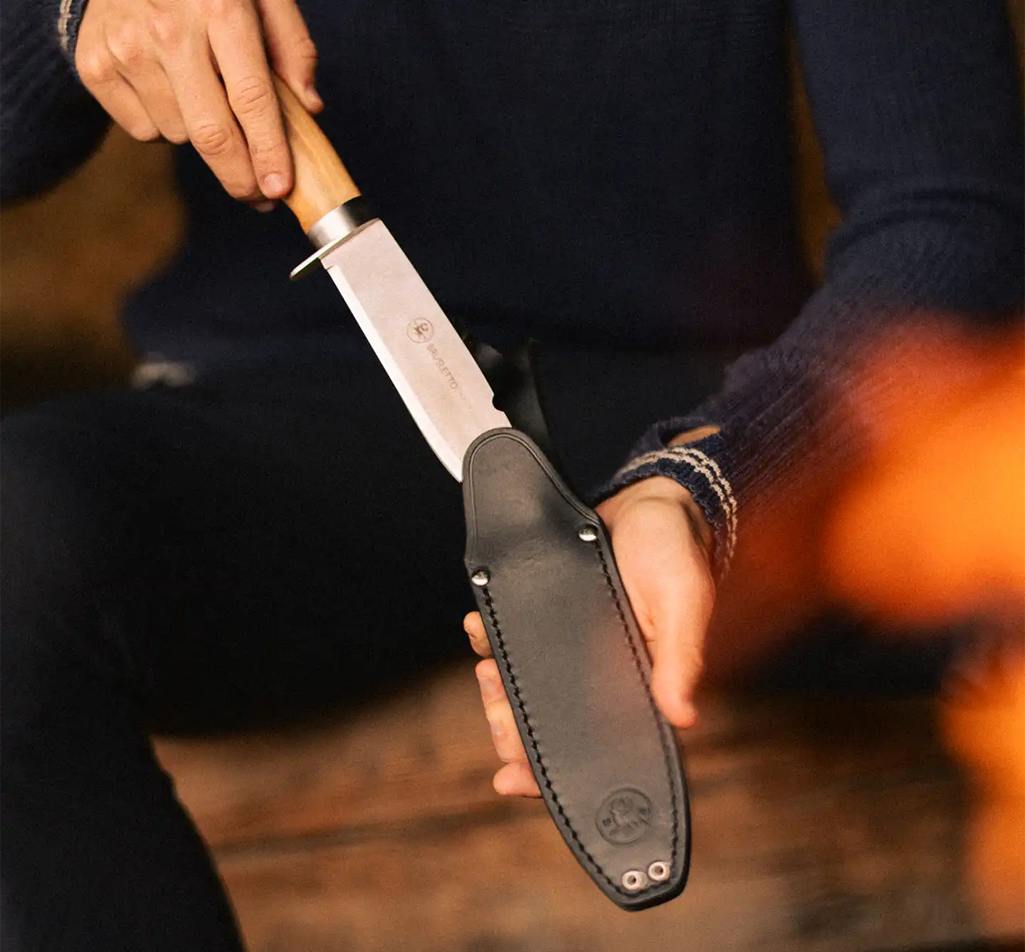 Villmarka-kniven er grundig testet i krevende norske skog- og fjellforhold, samt under ekstreme polare forhold. Dette garanterer at den vil være en pålitelig følgesvenn uansett hvor turen tar deg. Kniven kommer også med en elegant sort slire i okselær som beskytter bladet og gjør det enkelt å bære med seg.
