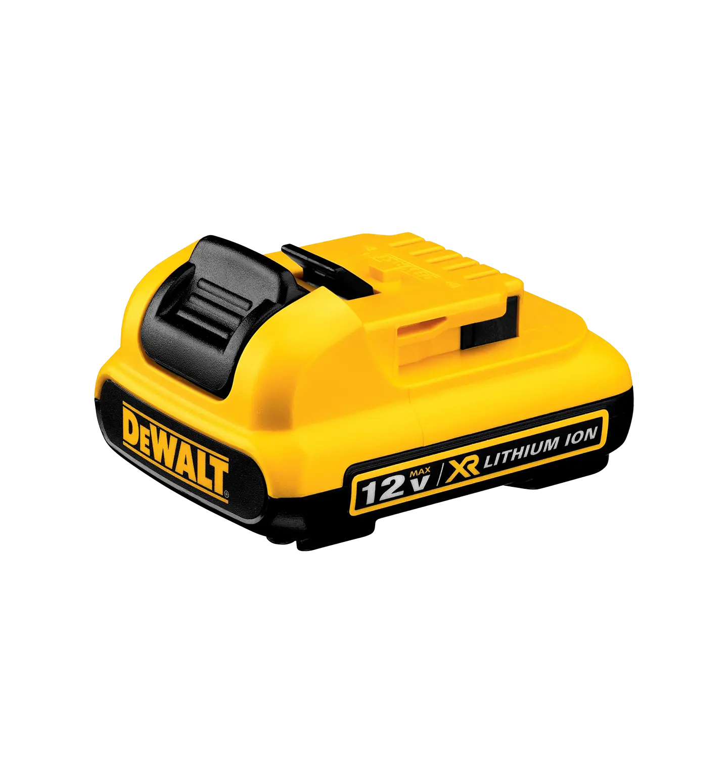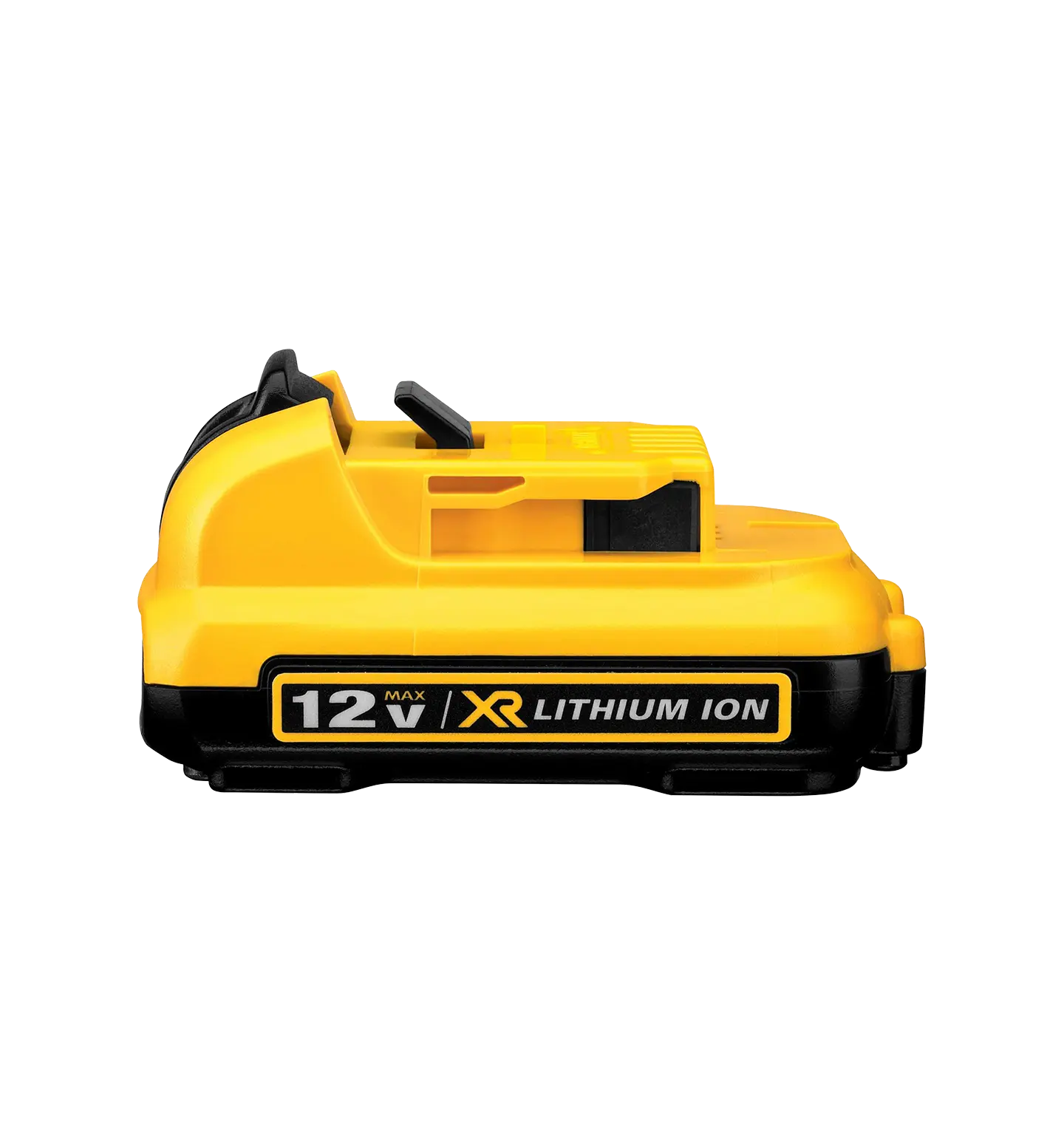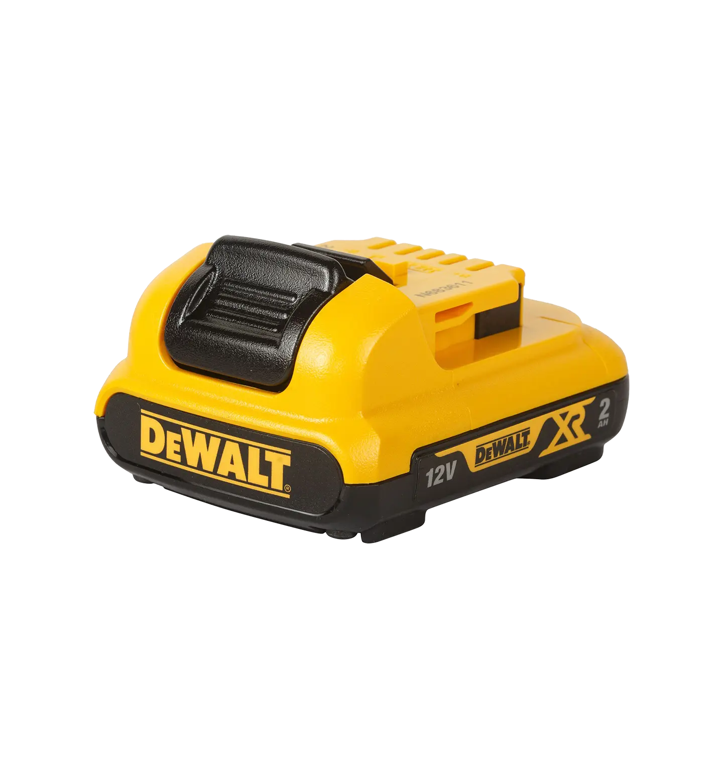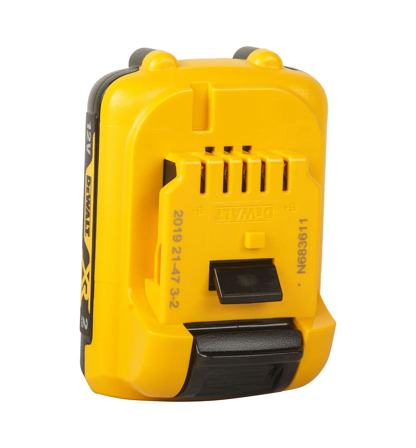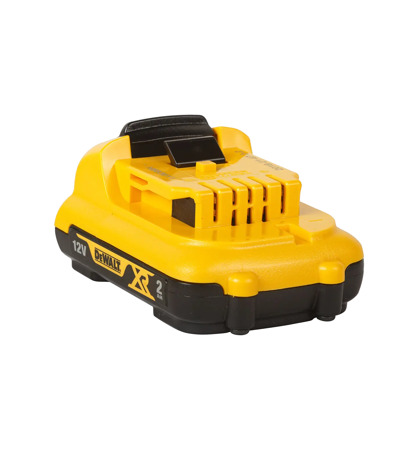 Kompakt 12V XR Li-ion batteri med 2Ah kapasitet for pålitelig driftstid, ideelt for bruk med DeWalt 12V XR-verktøy.