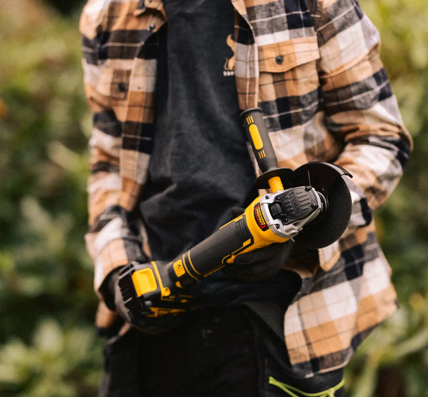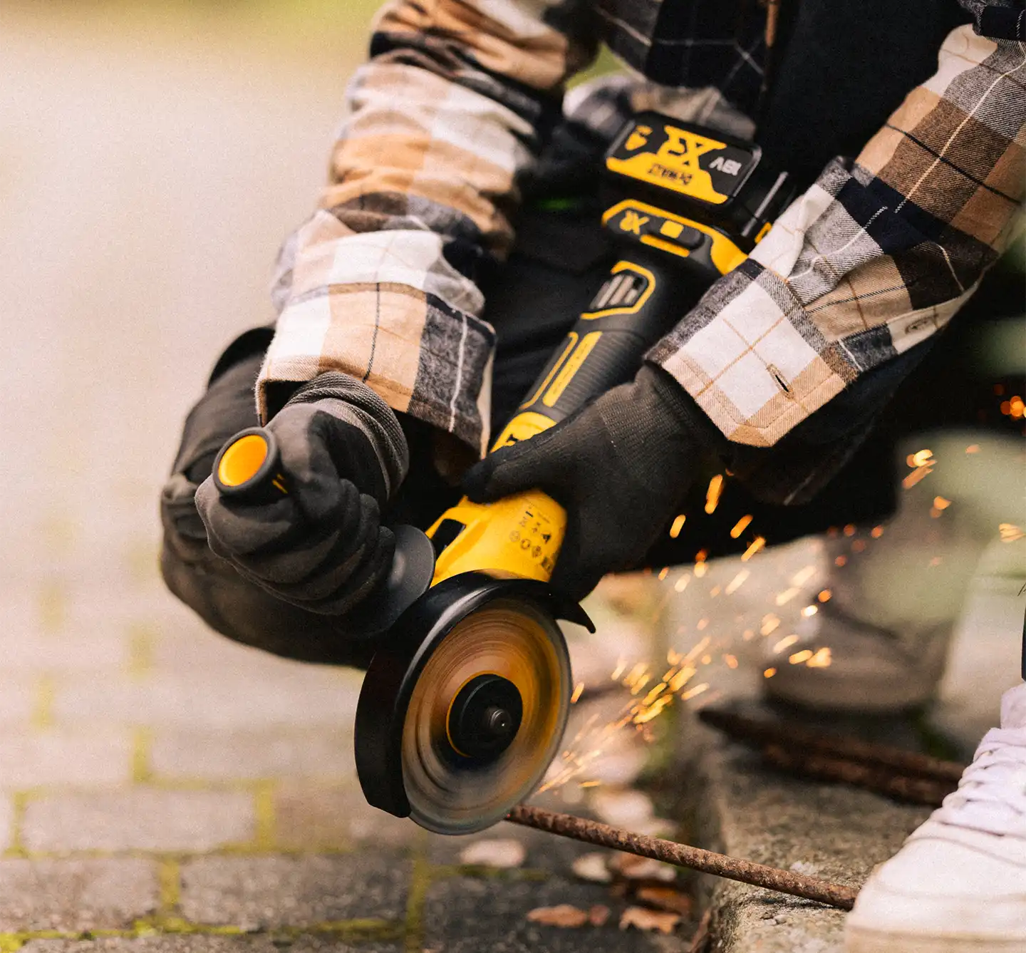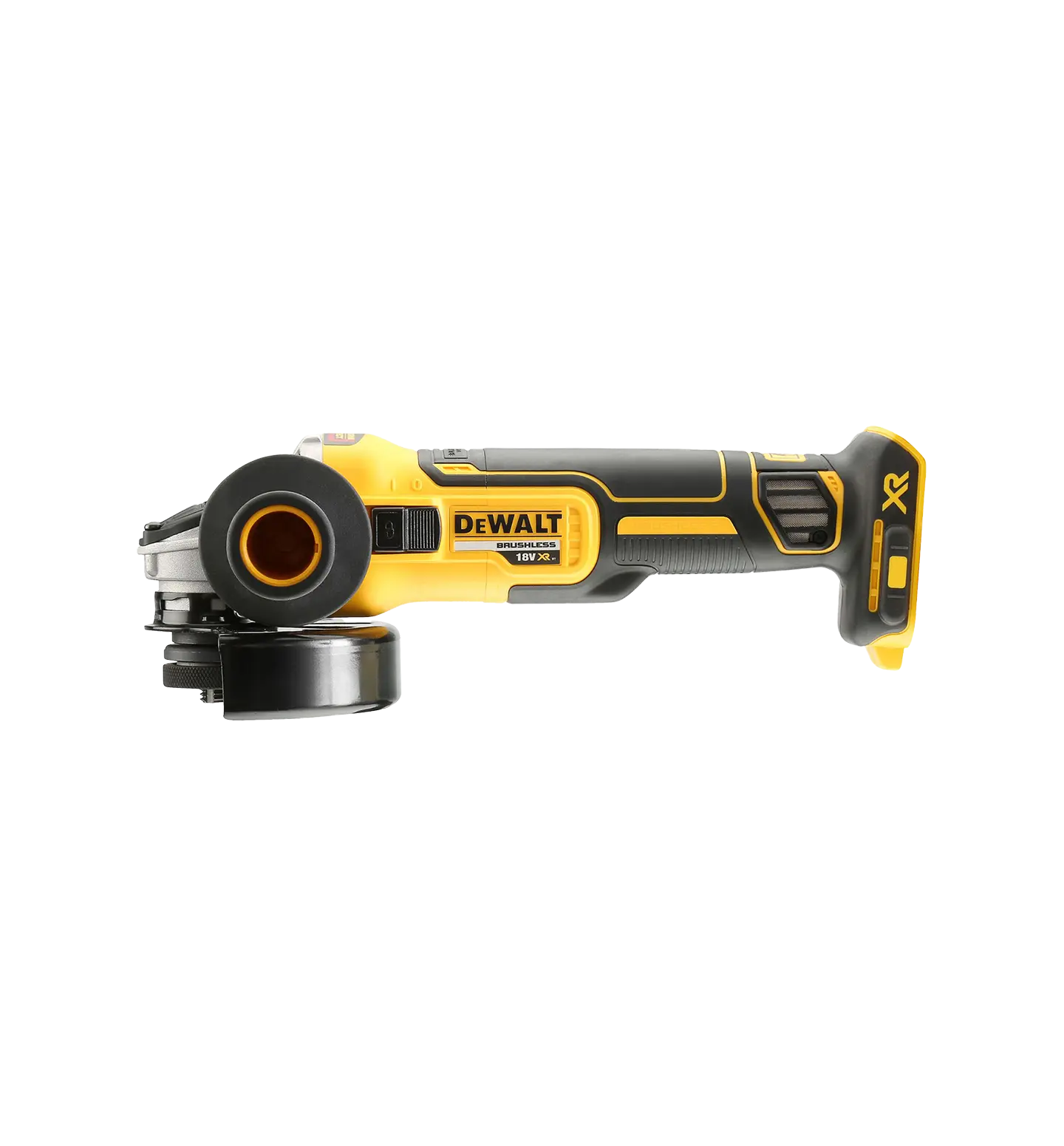 Kraftig 18V XR vinkelsliper med børsteløs motor og sklibryter for sikkerhet og presisjon.