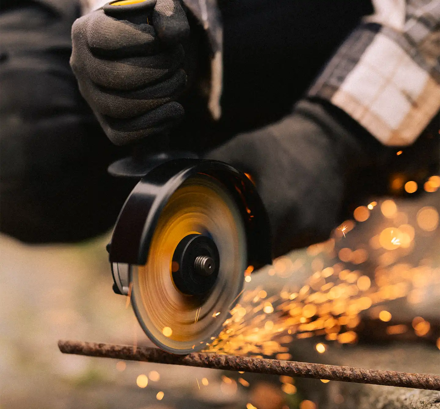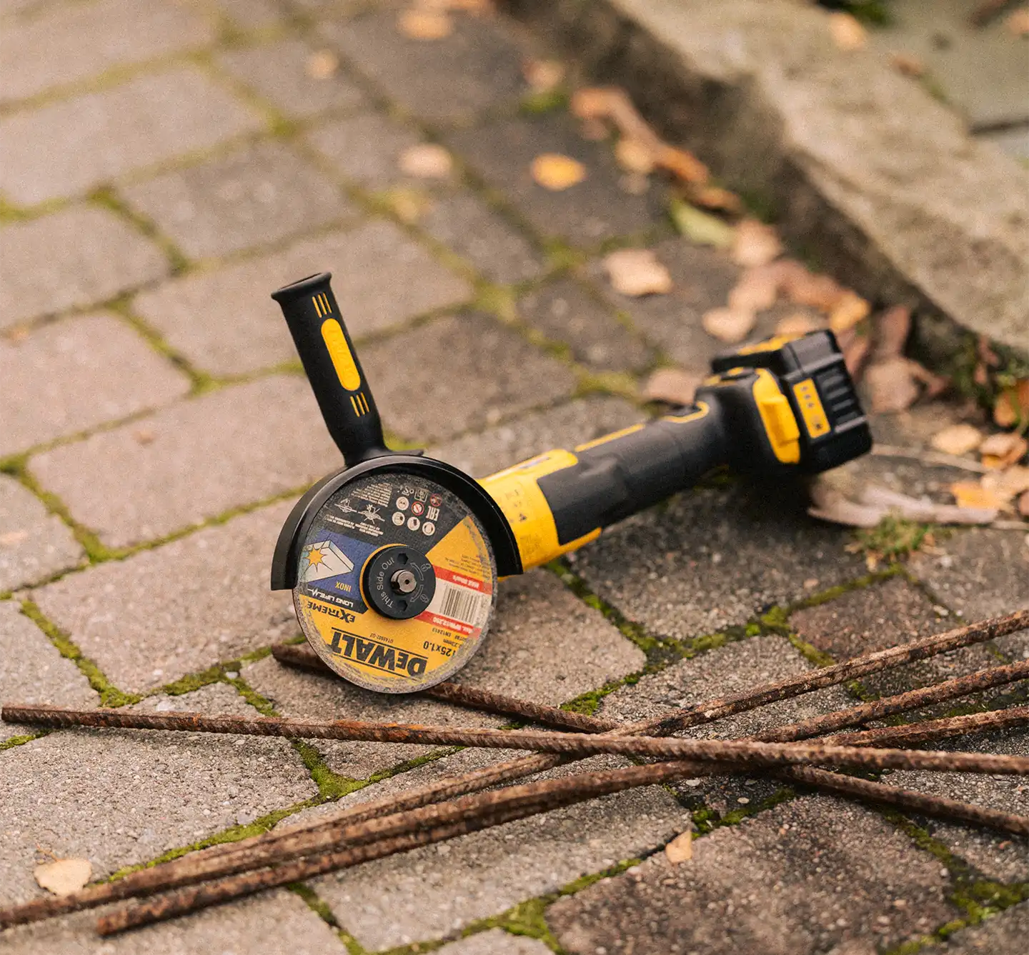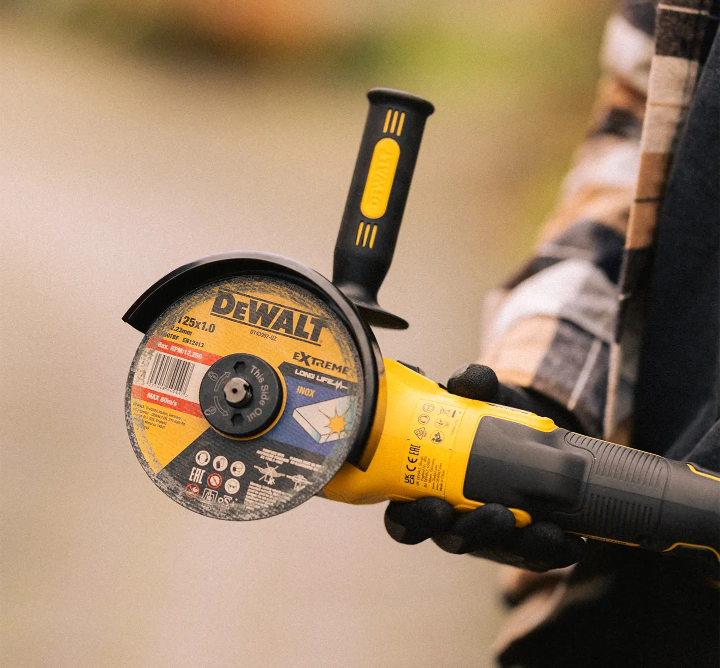 Kraftig 18V XR vinkelsliper med børsteløs motor og sklibryter for sikkerhet og presisjon.