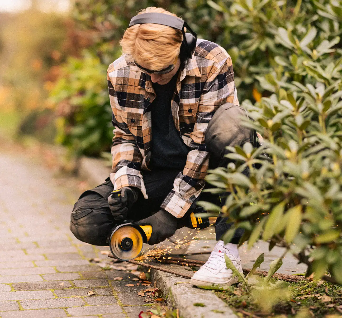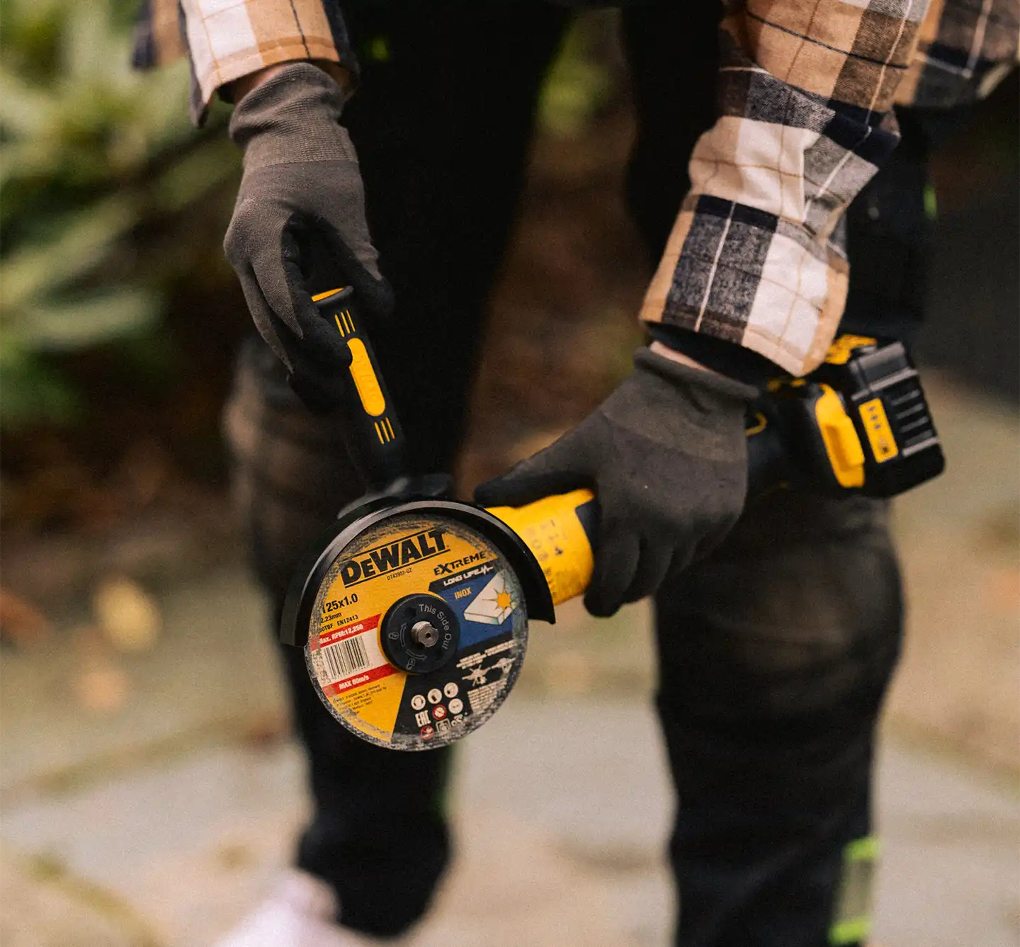 Til tross for sin kraft, har DCG405 en kompakt og ergonomisk utforming som gjør den lett å manøvrere, selv i trange rom. Det gummierte håndtaket gir et godt grep, reduserer vibrasjoner og gjør verktøyet komfortabelt å bruke over lengre tid. Vinkelsliperen veier kun 1,75 kg, noe som gjør den lett og enkel å håndtere under lange arbeidsøkter.