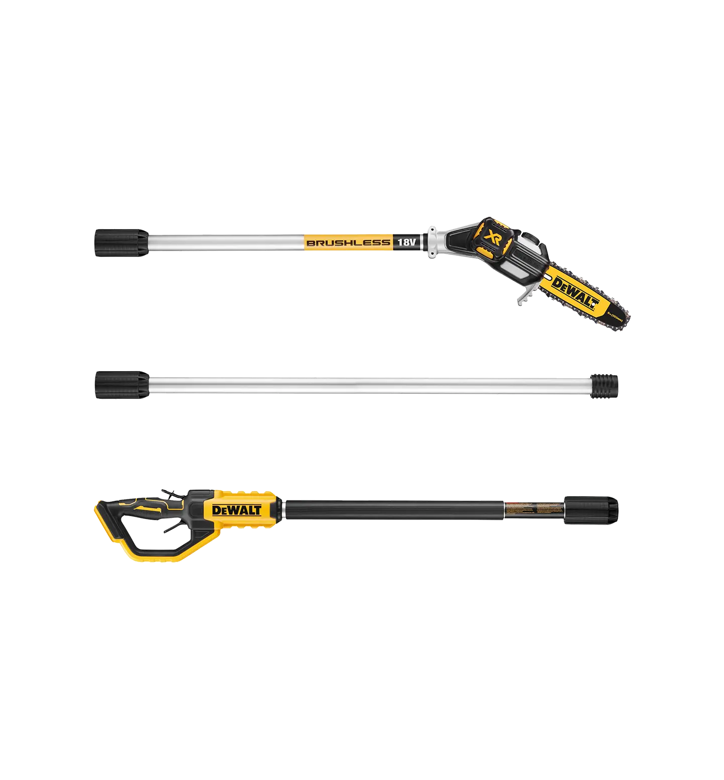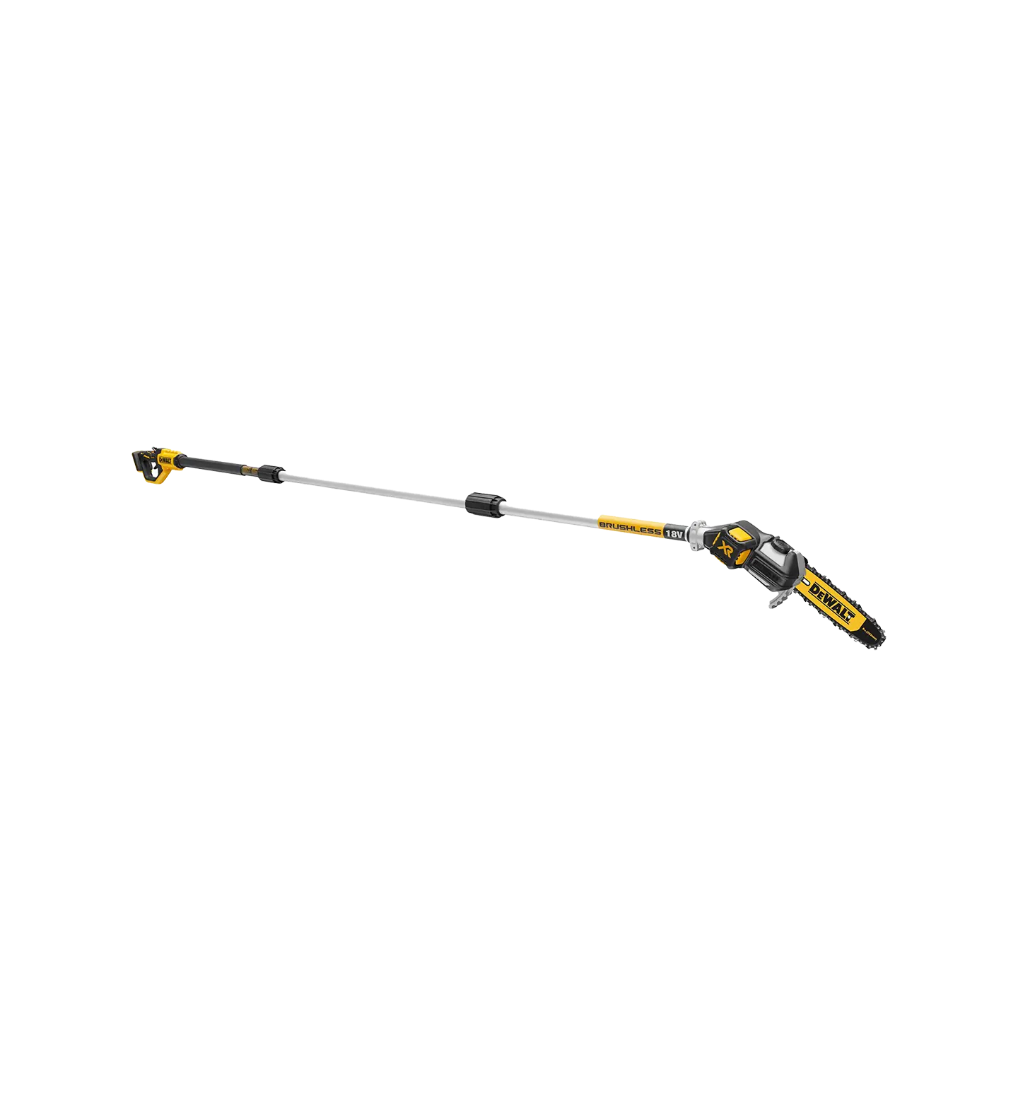 Teleskopisk 18V XR grensag med 3 meters rekkevidde, ideell for presis kutting av høytliggende greiner.