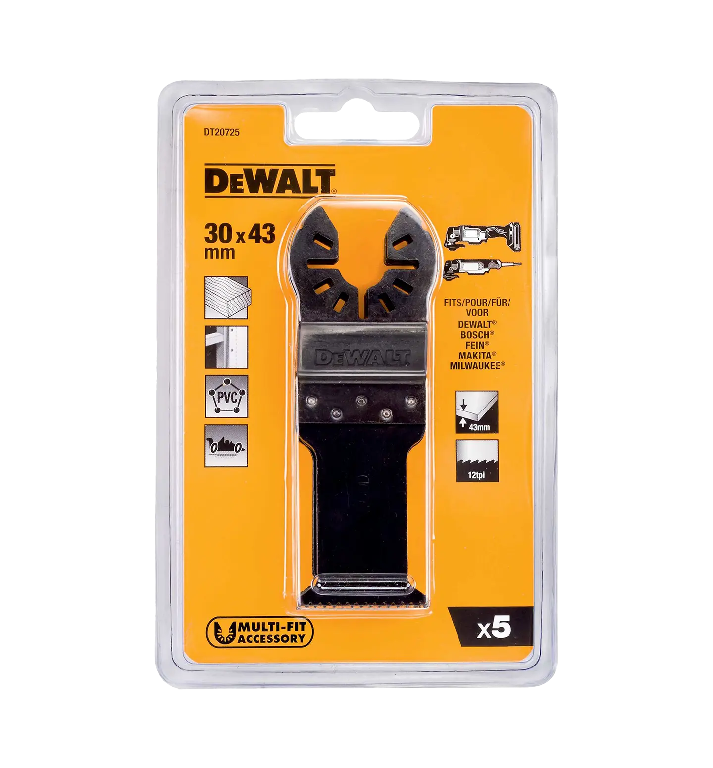 DT20725 Sagbladsett for multiverktøy Hurtigsaging i treverk 30x43mm 5stk
