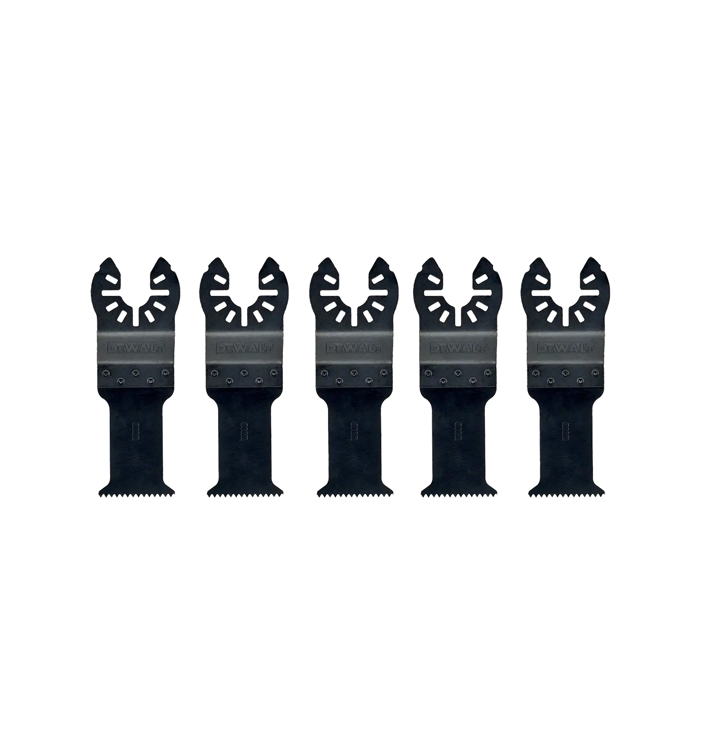 DeWalt 5-delt sagbladsett for multiverktøy og feinsag, spesialdesignet for hurtigsaging i treverk, 30×43 mm for raske og effektive kutt.