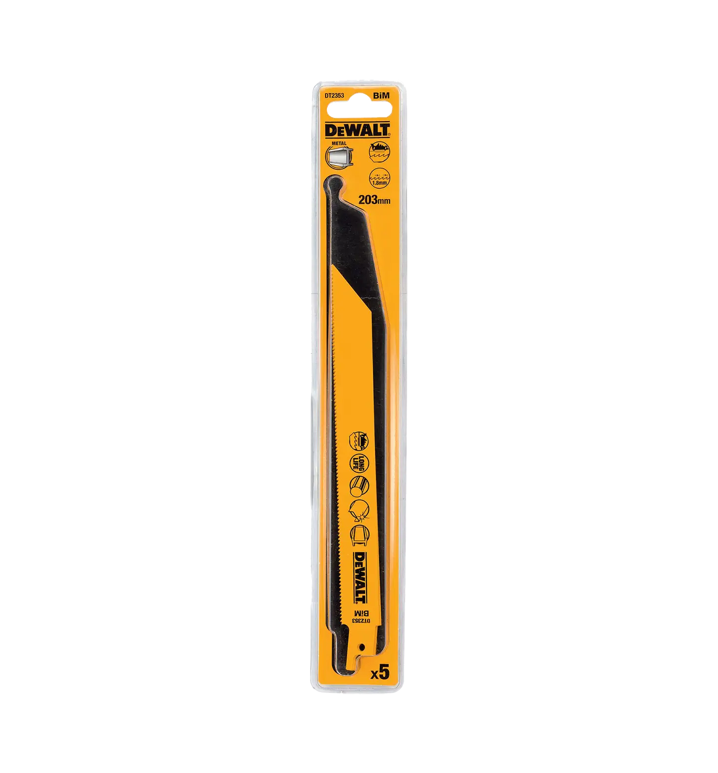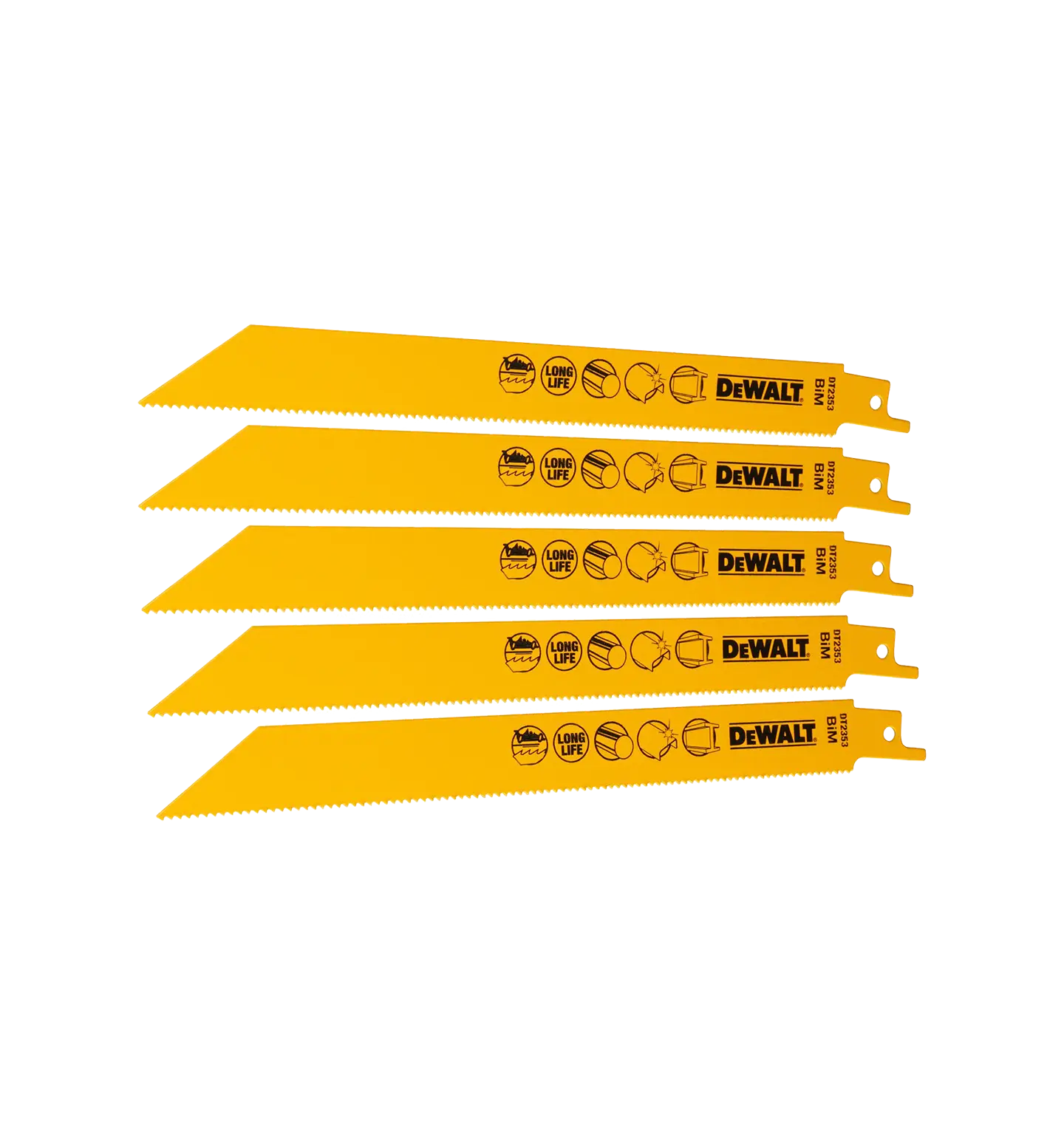 DeWalt DT2353 sagbladsett for bajonettsag og tigersag er det perfekte valget for profesjonelle brukere som trenger presisjon og slitestyrke ved kutting i metall. Med fem holdbare blader som er laget for å tåle tøffe oppgaver, er dette settet en pålitelig løsning for alle dine metallkuttebehov.