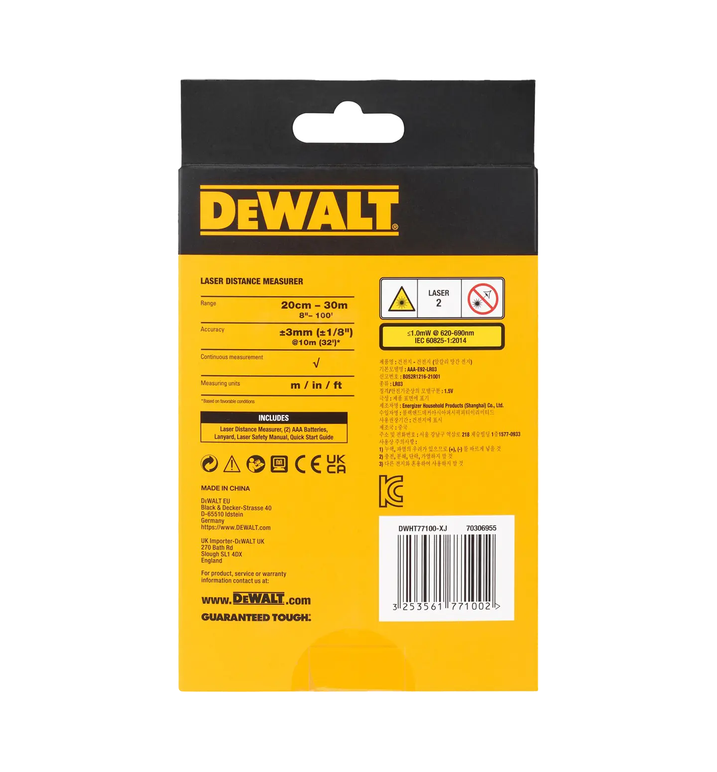 DWHT77100 Avstandsmåler 18V XR 30m uten batteri & lader