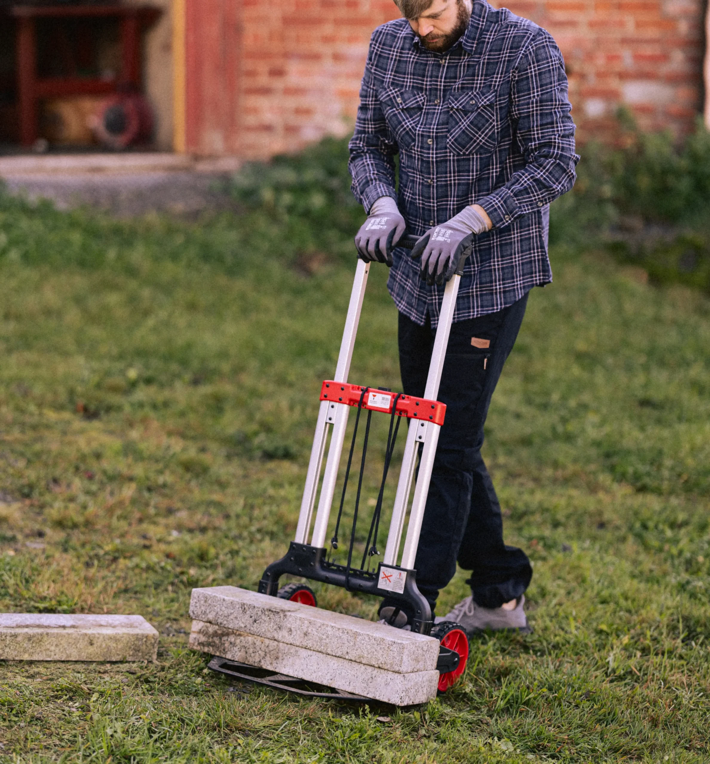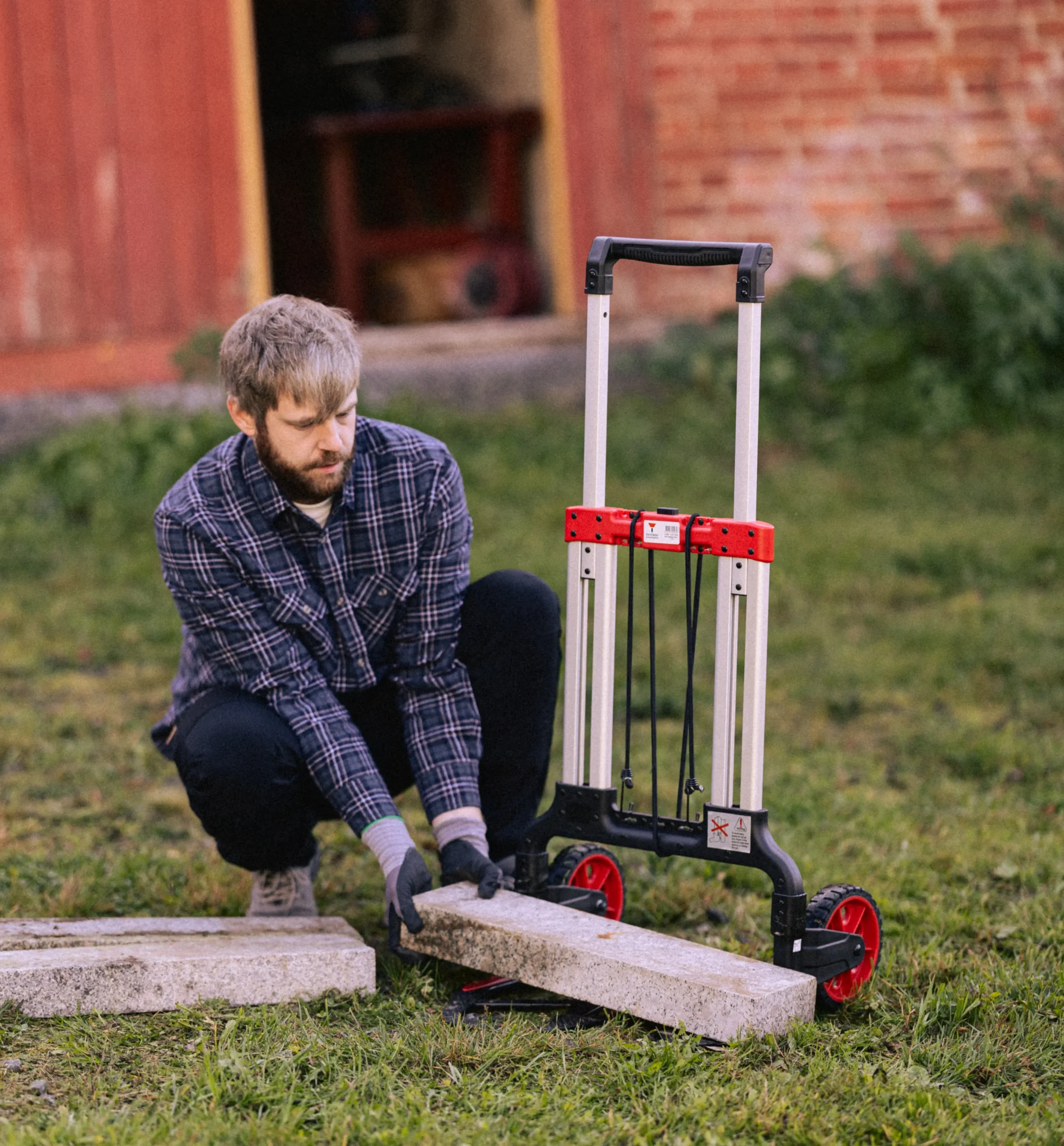 Solid og lett sekketralle for 125 kg last, med sammenleggbart design.