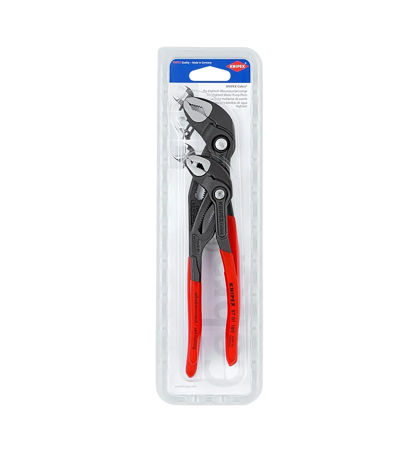 Sett med to Knipex Cobra Vannpumpetenger på 180 mm og 250 mm.