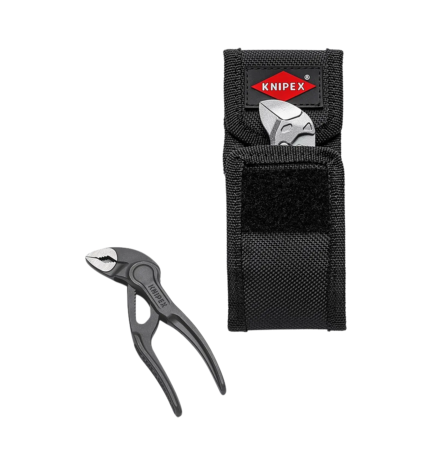 - 87 00 100 Knipex Cobra XS Vannpumpetang: En kompakt vannpumpetang med hurtigjustering via trykknapp og selvlåsende grep på rør og muttere opptil 24 mm. Den slanke designen gjør den ideell for arbeid i trange områder.