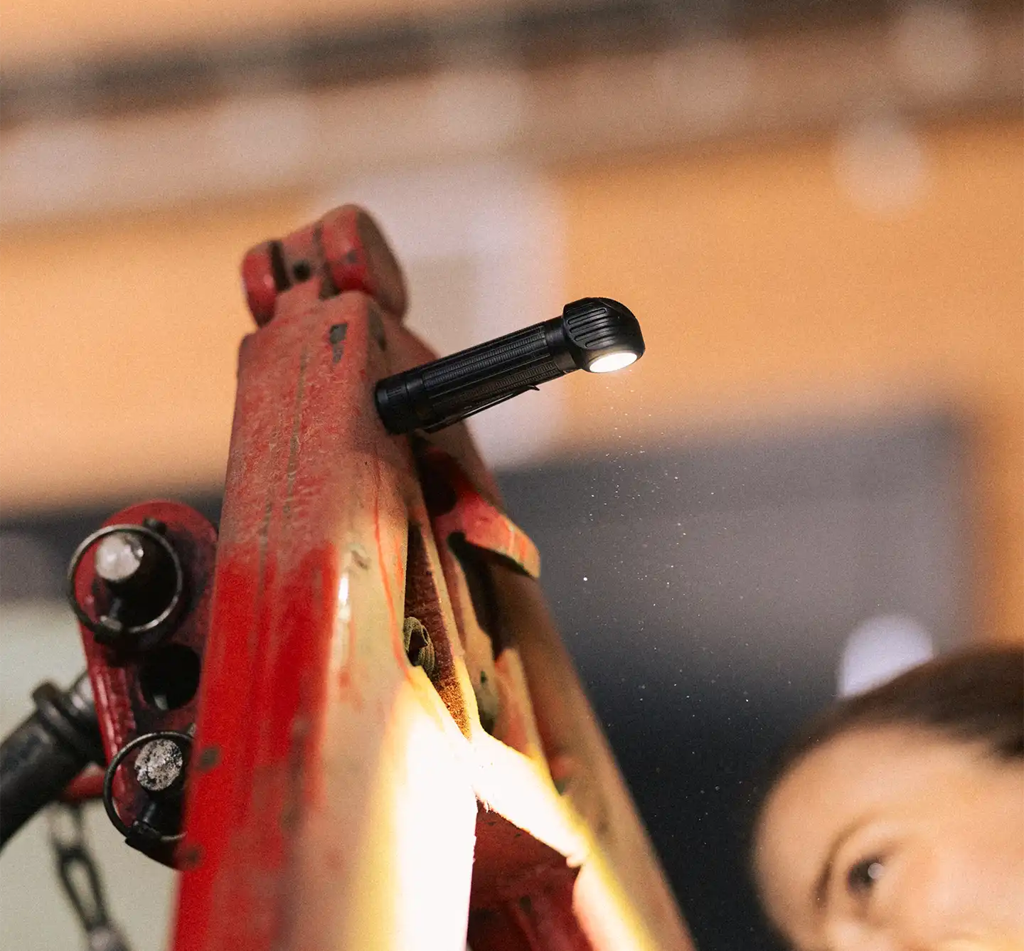 M6xr er bygget for å tåle tøffe forhold med sin slitesterke aluminiumskonstruksjon og IP68-sertifisering for vann- og støvbeskyttelse. En kraftig magnet i bunnen av lykten gjør det enkelt å feste den til magnetiske overflater, noe som er spesielt nyttig ved arbeid i mørke omgivelser.