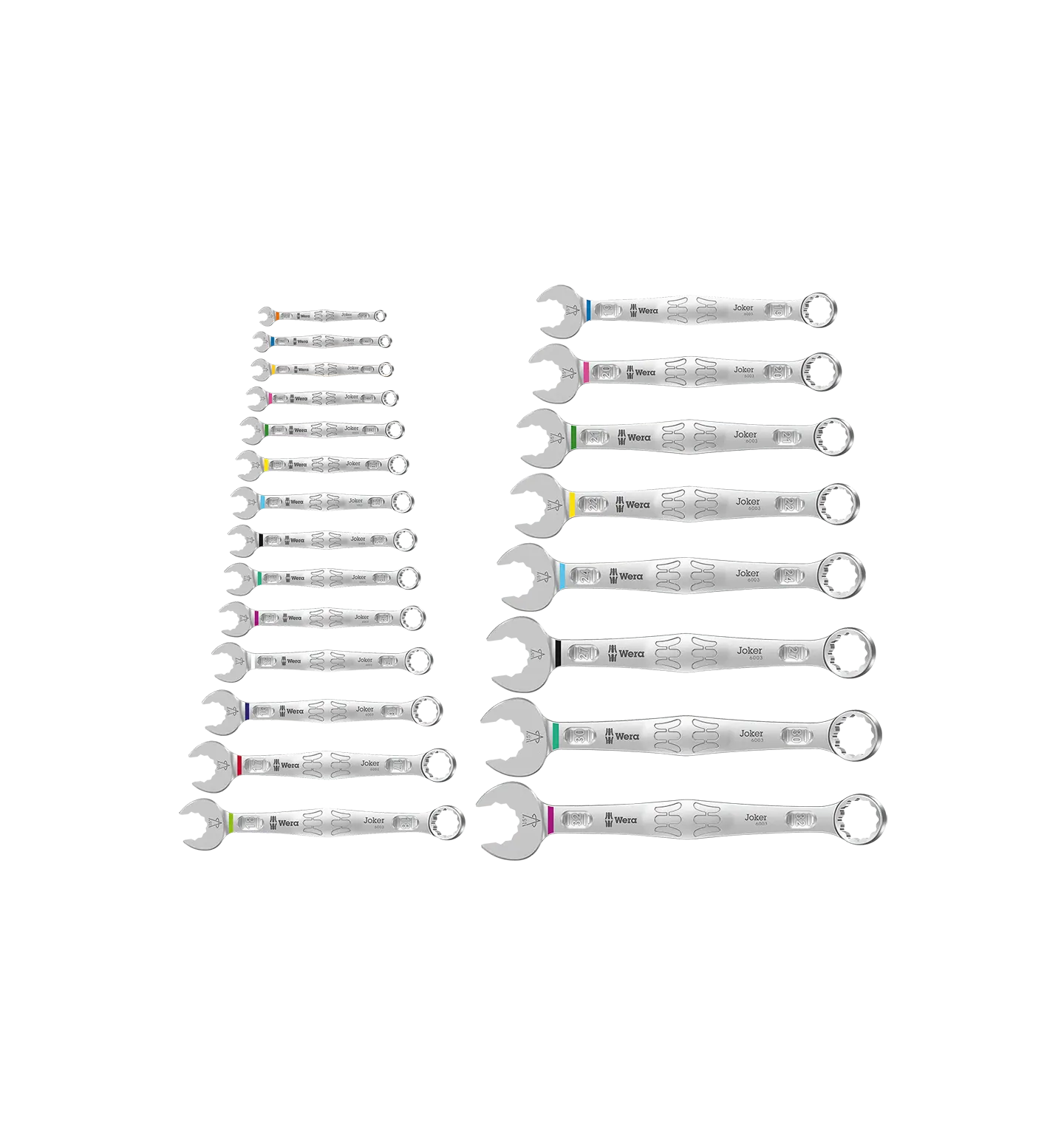 Wera 6003 Joker 22 Set 1 er et imponerende kombinasjonsnøkkelsett designet for å gi maksimal effektivitet og presisjon. Med 22 nøkkelstørrelser fra M5,5 til M32, er dette settet ideelt for både profesjonelle håndverkere og entusiastiske hjemmebrukere som krever det beste av verktøy.