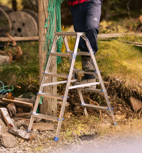 Werner Arbeidsbukk er en lett og stabil krakk med en robust aluminiumskonstruksjon. Med sin utforming som A-trapp, med trinn på begge sider, er den praktisk å bruke i mange arbeidssituasjoner. Perfekt til både innendørs og utendørs bruk, hjemme eller på hytta.